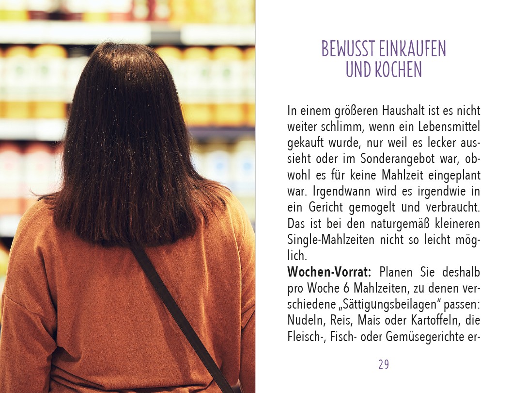 Mit diesem kleinen Ratgeber wollen wir all diesen Singles dabei helfen, sich köstlich zu ernähren, vielleicht auch etwas gesünder als bisher, und nicht unnötig gute Lebensmittel verderben zu lassen. Zugleich soll es auch möglichst schnell gehen, denn weder als Student noch im Ruhestand will man stundenlang in der Küche stehen, sondern lieber seine Hobbys betreiben, verreisen, eine Sprache lernen oder all die Bücher lesen, für die man bisher keine Zeit hatte.