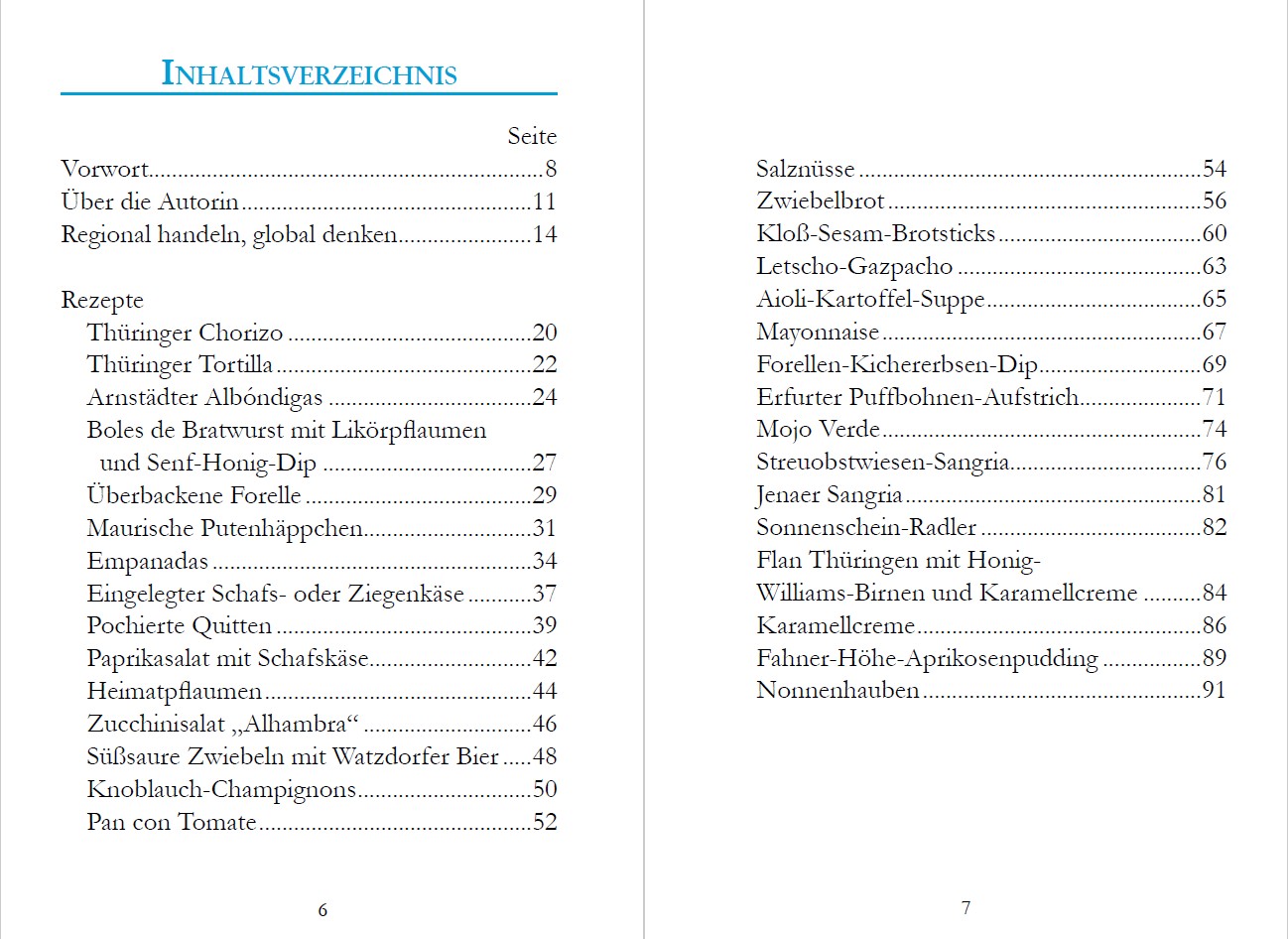 Lassen Sie sich auf eine kulinarische Reise nach Spanien entführen, ohne den Reisepass mitnehmen oder Ihren Koffer packen zu müssen. Die Rezepte in „Thüringen Tapas“ sind beeinflusst von der spanischen Küche. Die Autorin möchte durch die Kombination von Thüringer Rohstoffen mit spanischen Grundprinzipien Tapas neu interpretieren. Dadurch entstehen neue spannende Köstlichkeiten: Internationale Küche mit Zutaten von nebenan. „Thüringer Kloßbrotsticks“, „Jenaer Sangria“ oder „Heimatpflaumen“. Von herzhaft bis süß ist bei den Appetithäppchen für zwischendurch alles dabei. Die Erwähnungen von einigen Thüringer Produzenten und Produkten dienen als Beispiel und sollen Impulse geben, regionale Spitzenprodukte zu entdecken.