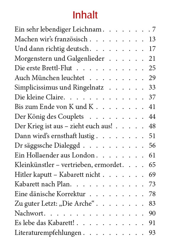 Der Erfurter „Arche“-Kabarettist Ulf Annel zeichnet hier kurz, bunt und amüsant den Weg vom „Überbrettl“ bis ins humoristisch-satirische Heute.